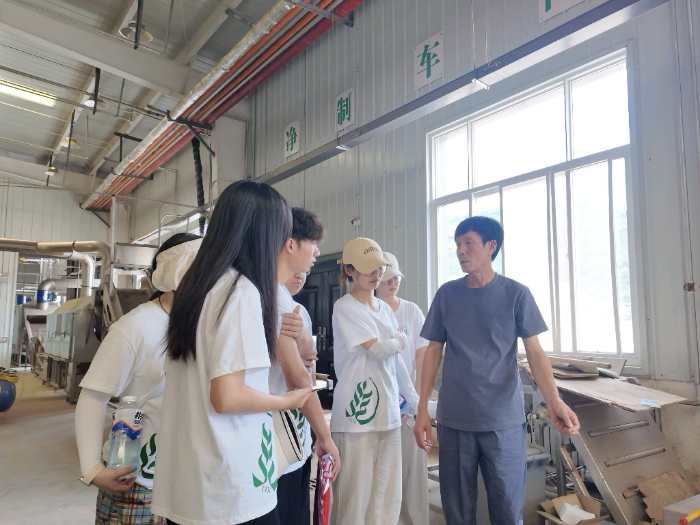 探訪中藥飲片廠區聚焦連翹產業困境 為了了解連翹加工流程及收益情況,實踐團成員首先來到宜君縣中藥飲片趁鮮切制廠,在切制廠技術員的帶領下詳細觀摩了藥材的加工流程。