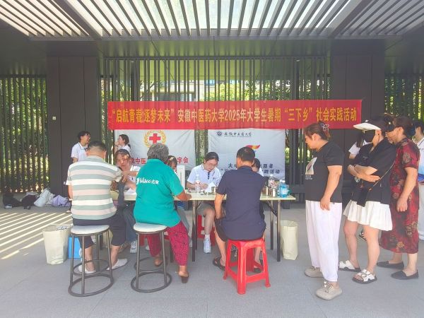 為深入踐行"健康中國”戰略,將中醫藥知識與服務送到群眾身邊,2025年7月4日-6日,安徽中醫藥大學“青青蒼木,始于關愛”實踐團,帶著精心準備的醫療器械與愛心物資,走進安徽省合肥市新站區湖語時光、少荃府等社區,開展為期3天的“三下鄉”系列實踐活動。