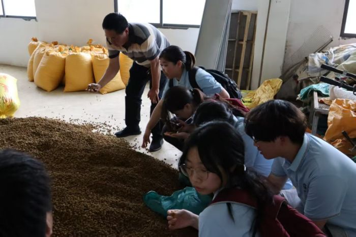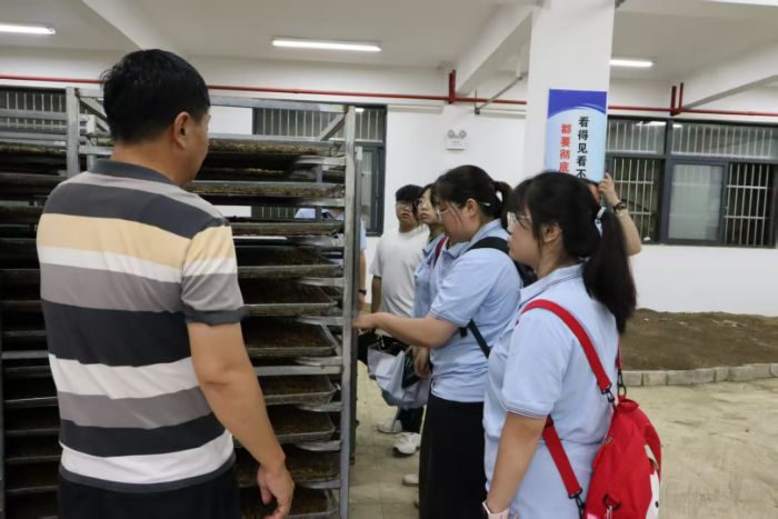 實踐團成員在分類倉前親身體驗了數據監測系統:“傳感器實時反饋干燥溫度曲線,比課本上的理論更直觀!科技讓‘道地藥材’有了可量化的品質保障。”