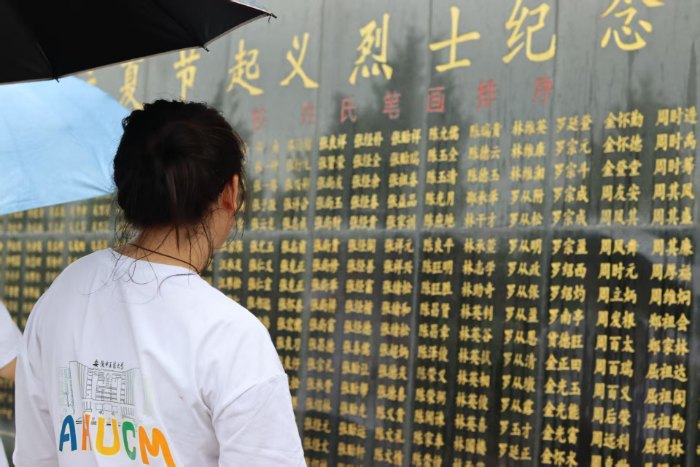 圖為團(tuán)隊成員參觀烈士紀(jì)念碑。閔文雪供圖