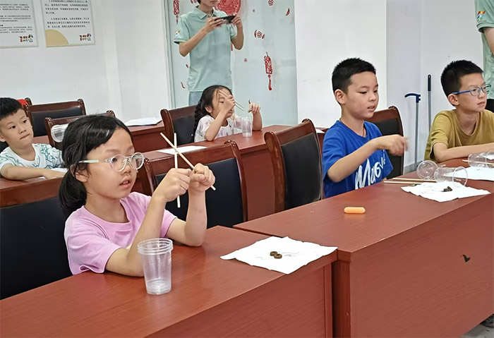 圖為小朋友們在觀察實驗現象。胡盛陽 供圖