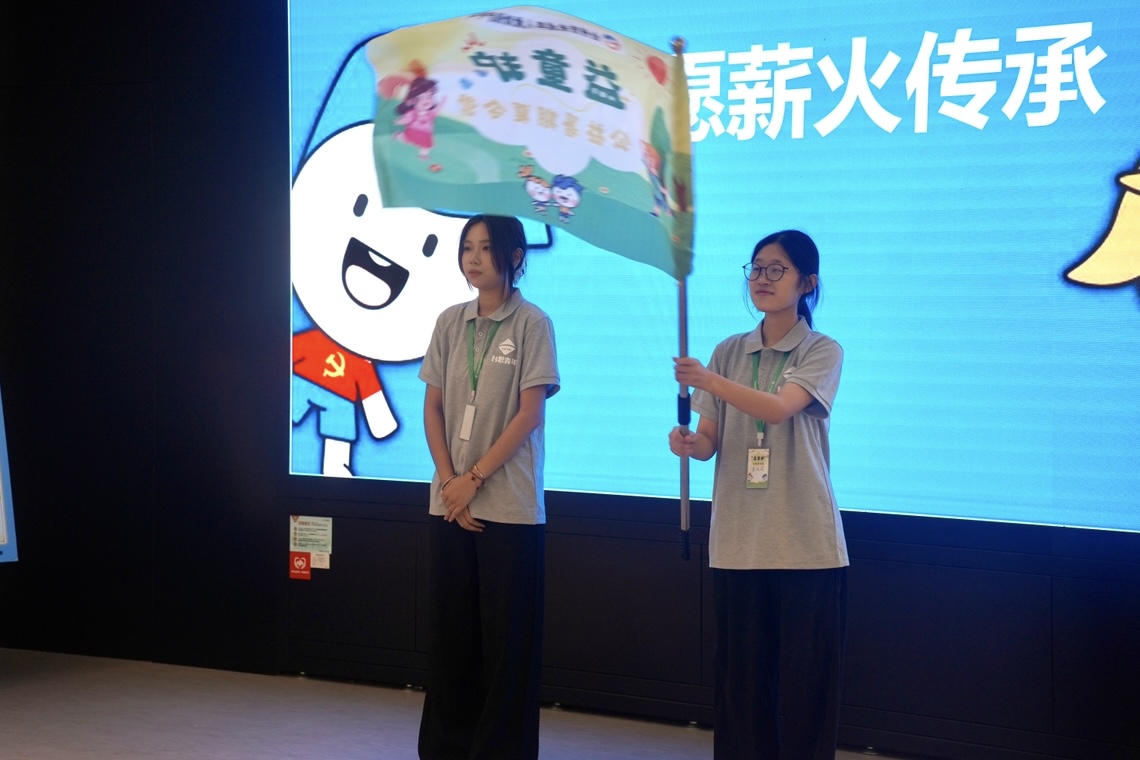 隊旗交接儀式在小朋友們打成一片時舉行,這面責任與愛心隊旗在往屆與新一屆實踐隊員間莊嚴傳遞。這不僅是一次儀式,更是“益童護”精神的薪火相傳,象征著守護兒童成長的承諾與接力。小朋友們見證了這一刻,他們清澈的眼眸里,好奇之外,更閃爍著對責任與愛的向往與敬意。