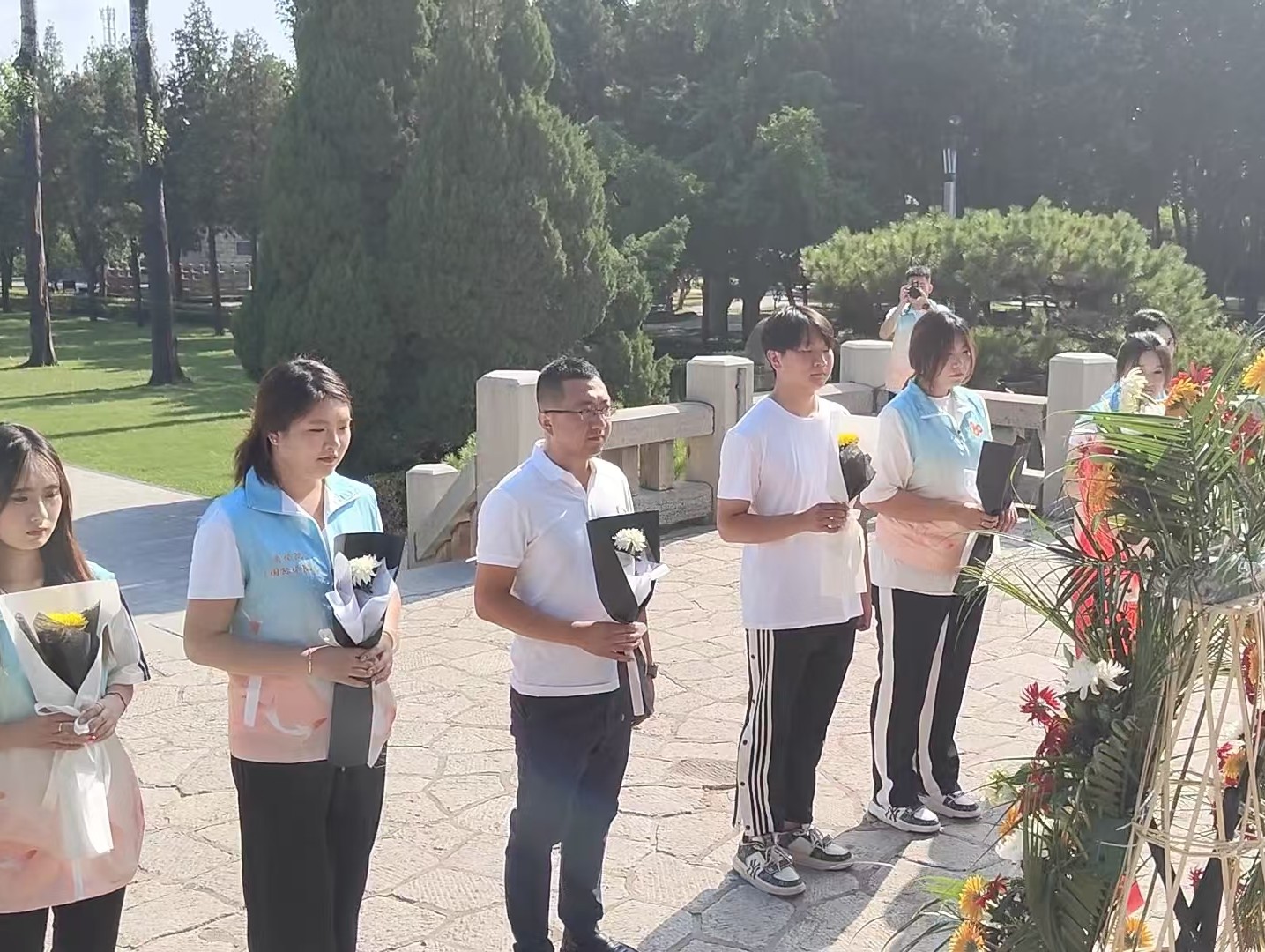 當日下午,實踐團前往華東革命烈士陵園。在革命烈士紀念塔前,全體成員舉行了敬獻花籃儀式,向烈士默哀致敬,隨后參觀陵園內的紀念建筑與紀念館,了解不同時期革命烈士的英勇事跡。