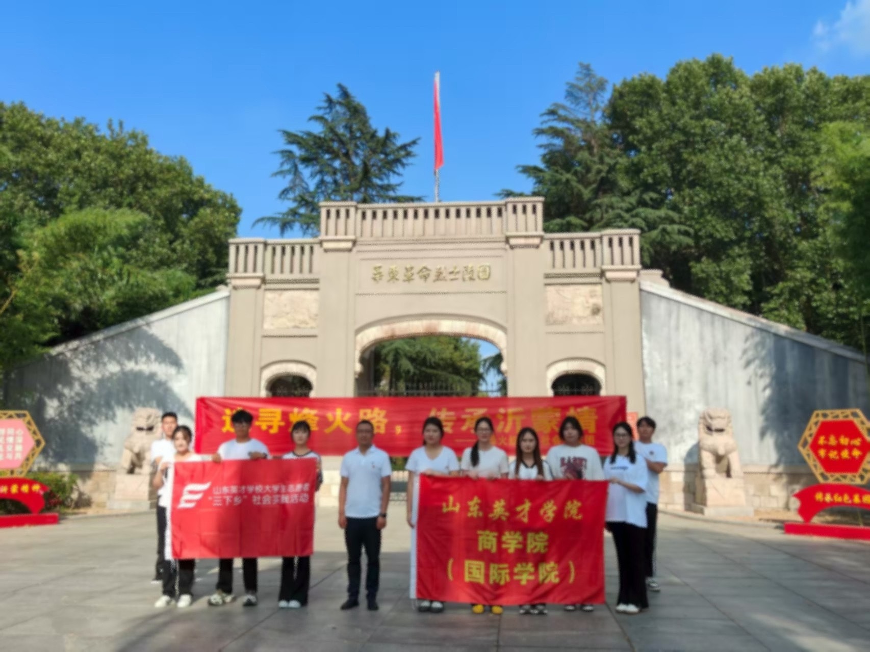 圖為實踐團成員在沂蒙烈士陵園合影