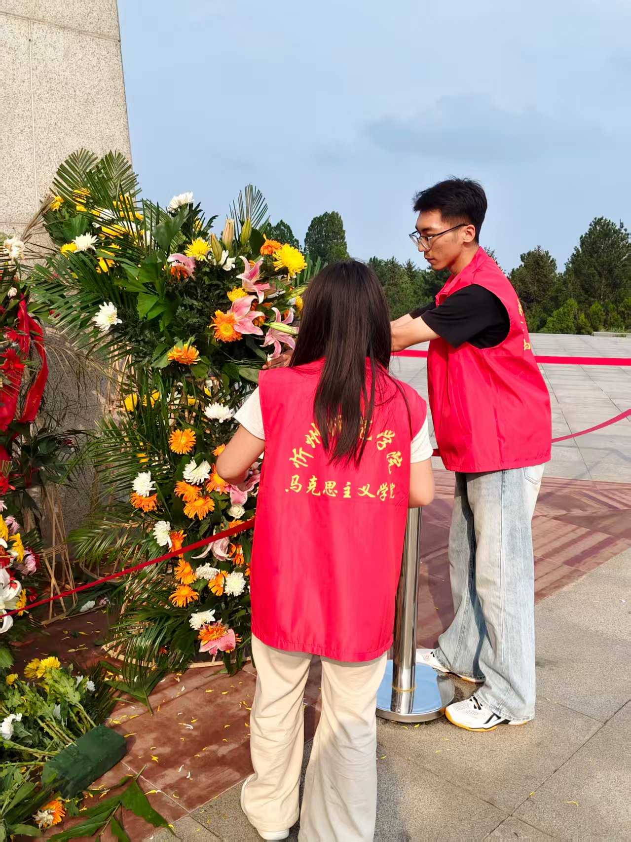 活動最后,隊員們在紀念館廣場的百團大戰紀念碑前舉行鞠躬儀式。全體人員整理衣裝,列隊肅立,向為百團大戰勝利獻出生命的革命先烈三鞠躬,深切緬懷他們的英勇事跡。鞠躬禮畢,廣場上靜立片刻,隊員們凝視著紀念碑上的浮雕,仿佛能聽見當年沖鋒的號角與吶喊。隊員們表示,此次調研是一堂深刻的愛國主義實踐課,從百團大戰的歷史中汲取奮進力量,將個人理想融入國家發展大局。帶隊學生王思辰說:“躬身致敬的瞬間,更懂今日和平的珍貴。作為新時代大學生,我們要以先烈為榜樣,在學習和實踐中錘煉本領,讓百團精神在青春征程中閃耀光芒。”