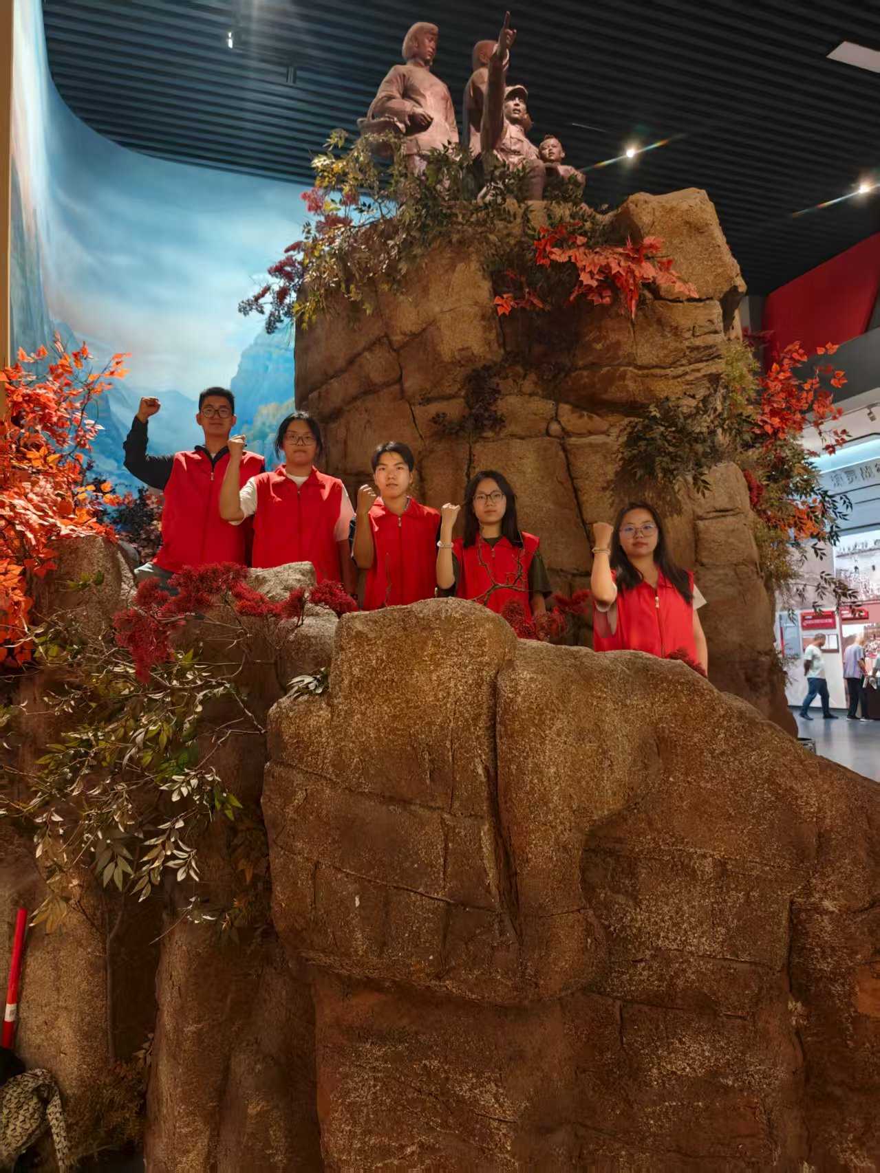 在紀念館內的主題雕塑前,同學們以“沉浸式場景”為課堂,開啟別開生面的研討。同學們身著紅色研學服,在革命先輩群像的凝視下,圍繞“百團大戰的歷史邏輯與精神傳承”展開思考。結合馬克思主義“人民群眾是歷史創造者”的理論,分析戰役中“全民動員、軍民一心”的實踐價值——“群眾踴躍支前送糧、破壞敵人交通線,正是‘人民戰爭’思想的生動體現,這與馬克思主義唯物史觀高度契合。”