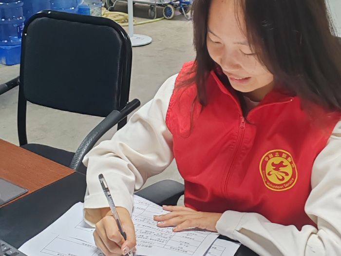 圖為實踐團成員晏文靈在社區登記社區基本情況。晏文靈 供圖