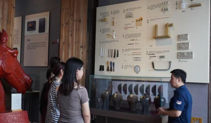 圖為實(shí)踐隊(duì)隊(duì)員在福州文化館參觀脫胎漆器。張思敏 供圖