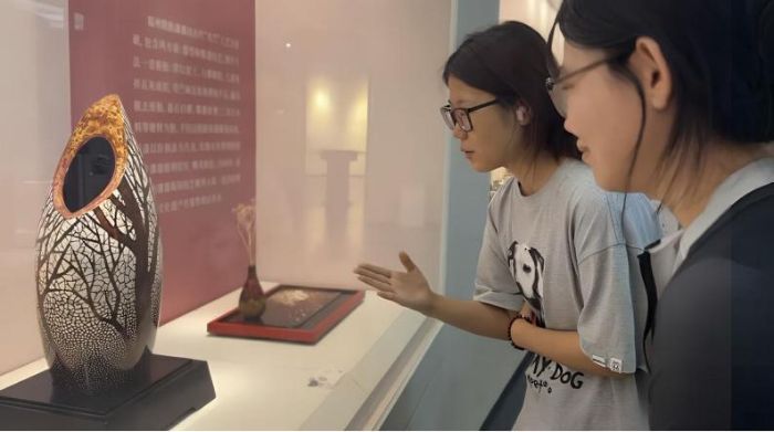 隊(duì)員吳悠興奮地分享著幾日所學(xué):“你看這戧金漆盒,要先在漆面上刻花紋,再填金粉,當(dāng)年得耗上匠人半年功夫。”從生漆采集到髹漆層數(shù),漆文化已在隊(duì)員們心中悄然扎根。古老漆器雖沉默不語,卻通過人們的講述,將千百年的匠心故事代代相傳。離館時(shí)回望,那些靜靜陳列的漆器仿佛在訴說:真正的傳承,正是在人與人的講述中慢慢延續(xù),生生不息。