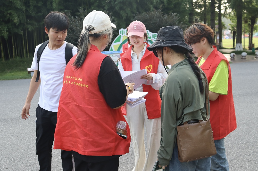 圖為團隊成員向游客發放調查問卷并科普。趙偉程 供圖