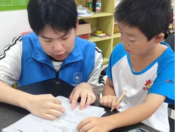 圖為實踐團成員在無錫楊市社會服務站為小學生開展科普宣講。徐亮雨 供圖