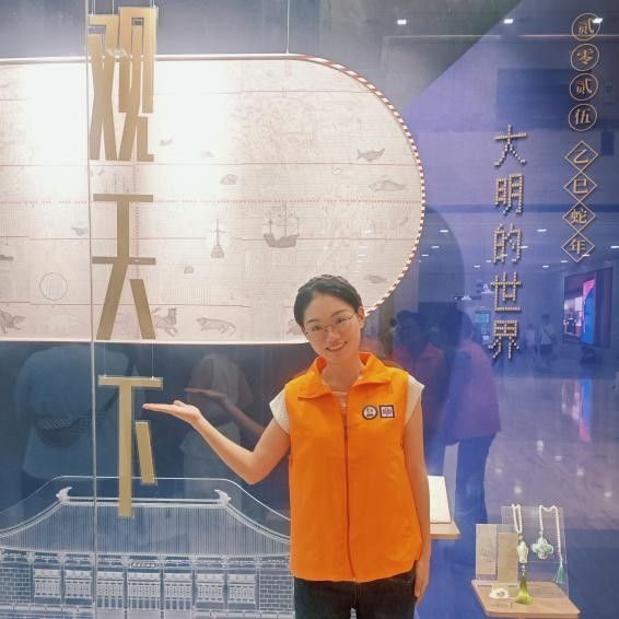 在博物院的日常服務(wù)中,實(shí)踐團(tuán)成員化身溫暖的支點(diǎn):他們耐心解答觀眾疑問,細(xì)心維護(hù)觀展秩序,協(xié)助大件行李寄存,確保導(dǎo)覽設(shè)備順暢流轉(zhuǎn),更在展廳巡視中默默守護(hù)著每一件文物的環(huán)境安寧。每一次引導(dǎo)手勢,每一次溫馨提示,都是南師青年對服務(wù)精神最質(zhì)樸的詮釋。與此同時(shí),程文玲、周程程兩位同學(xué)則投身于數(shù)字文化傳播的浪潮。歷經(jīng)近三周嚴(yán)謹(jǐn)?shù)膷徢芭嘤?xùn),她們在“坤輿萬國全圖VR大空間沉浸式展覽”正式開放后迅速成為中堅(jiān)力量。從前臺預(yù)約核銷、設(shè)備佩戴講解,到中控設(shè)備調(diào)度、場內(nèi)安全巡護(hù),再到設(shè)備回收清潔與出入口秩序維護(hù),她們在六個(gè)精密協(xié)作的崗位上無縫切換,每一個(gè)崗位,都是傳統(tǒng)地圖在數(shù)字維度煥新傳播的關(guān)鍵一環(huán)。