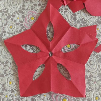 經(jīng)過學(xué)習(xí),董法以五角星為創(chuàng)作主題,獨(dú)立完成“五角映輝”作品,通過鏤空層次展現(xiàn)五角星的立體光影,邊緣輔以傳統(tǒng)“回紋”裝飾,既保留剪紙的對(duì)稱美感,又融入現(xiàn)代設(shè)計(jì)語(yǔ)言。“當(dāng)剪刀劃過紅紙的沙沙聲在指尖響起,我觸摸到了文化傳承的重量。”董法在實(shí)踐日志中寫道。