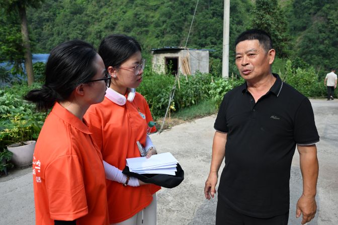 團隊成員在三洞村進行入戶走訪調研。楊佳奇 供圖