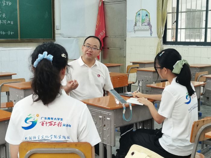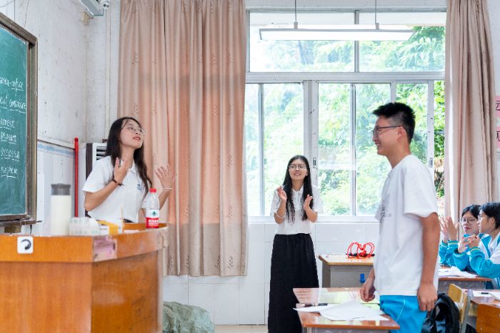 為深入貫徹落實廣東省“百千萬工程”和“雙百行動”部署,華南師范大學外國語言文化學院“博英江聲”實踐團連續兩年赴“雙百行動”重點幫扶地區肇慶市封開縣開展暑期“三下鄉”實踐活動。面對當地高中生普遍存在的英語基礎薄弱、學習興趣不足等問題,實踐團立足學科特色,創新采用“英語戲劇教學”模式,以“敢”為精神內核,通過沉浸式、互動性強的課堂設計,幫助江口中學準高二學生突破語言障礙,實現從“怯于開口”到“自信表達”的蛻變。