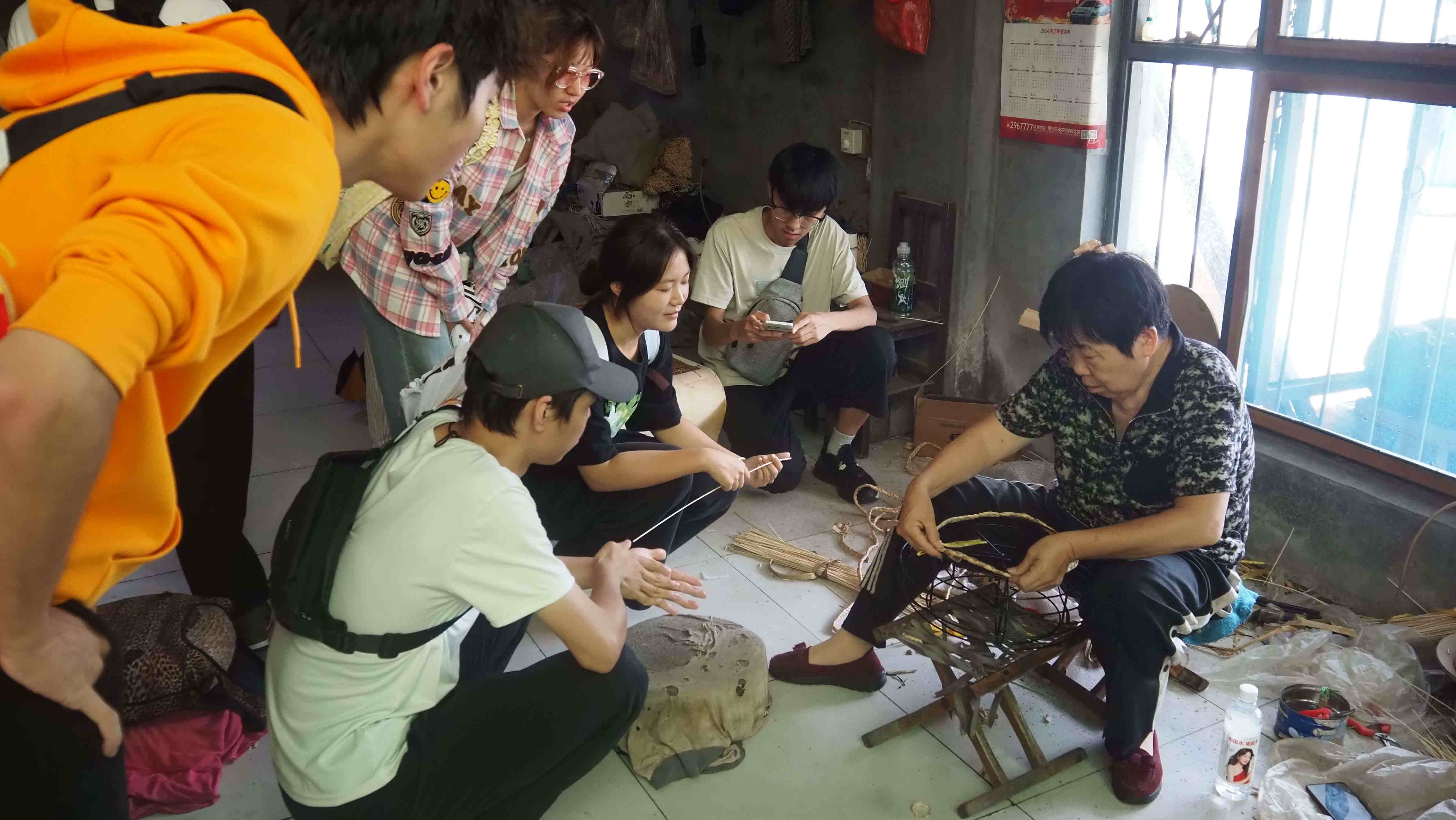 斷裂的傳承鏈:“等我們干不動了,手藝怕是要斷了”起初走訪的三戶村民都緊閉門戶,“怕你們是來打聽行情搶生意的。”直到聊起往昔柳編的故事,六十歲的奶奶才打開她的話匣子:“現在的姑娘們要么念書要么打工,村里編活的都是五六十歲的人。”她枯樹枝般的手指撫過柳條,“前幾天還有個七十多歲的大姐來領活,說編一個蒲團能掙三塊錢。”年輕人不愿從事并非不熱愛,而是難以靠此維持體面的生活。隊員們的心在看到屋內陰影里堆疊的半成品時,逐漸變得沉重起來,將這門技藝傳承與推廣的種子也深深的在隊員們心中發芽。