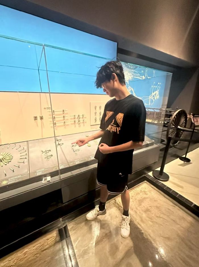 踏入壽縣博物館的那一刻,我的內心滿是期待。這座首批國家重點博物館,珍藏著無數見證楚文化輝煌的珍貴文物,是我們了解楚韻文化的絕佳窗口。在講解員的引領下,我和隊員們有序參觀各個主題展廳。青銅器的古樸厚重、陶器的歲月痕跡、玉器的溫潤雅致、漆木器的精美工藝,每一件文物都讓我們駐足良久。