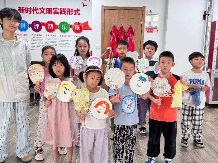 文化浸潤,創意飛揚扎染文化初體驗日,孩子們在隊員的指導下了解扎染歷史與工具,嘗試折疊扎、螺旋扎等基礎手法,親手給面料染色、拆結、沖洗,當獨一無二的扎染方巾晾曬在陽光下,孩子們眼中滿是成就感。情緒臉譜制作課上,超輕粘土在指尖變成“開心”“驚訝”“委屈”的模樣,亮片點綴的“激動”、細線勾勒的“淚痕”,讓抽象的情緒有了具象表達,故事分享環節更讓彼此的心聲緊密相連。漆扇制作進階課程中,素面木扇在孩子們筆下綻放光彩,山水、花卉、幾何紋樣經淺色漆料打底、細筆勾勒后漸顯雛形,傳統工藝與創意在扇面碰撞。