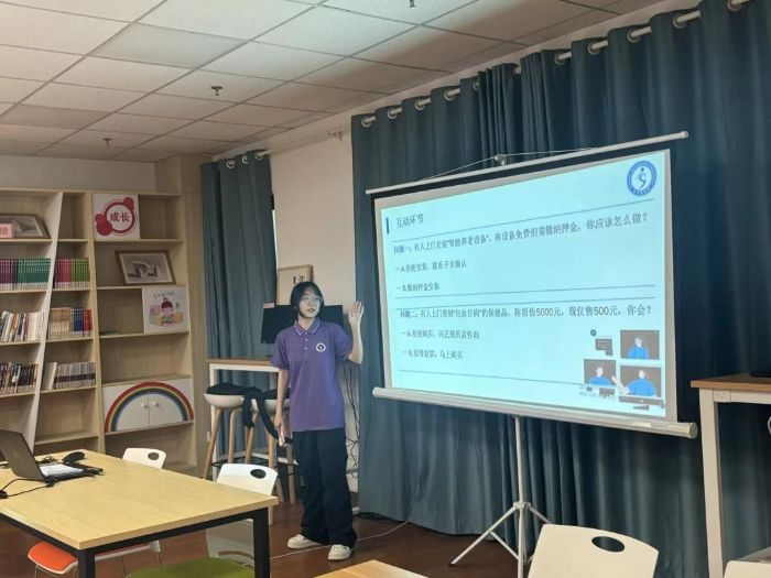 7月30日下午,實踐團隊以互動問答為亮點開展反詐宣講。團隊成員結合PPT,圖文并茂用日常化的語言講解詐騙特點與應對方法。
