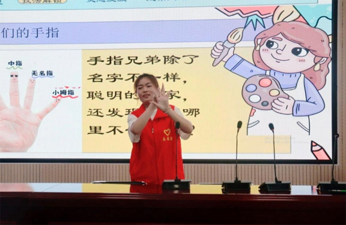 (圖為實踐隊員為孩子們上心理課。)