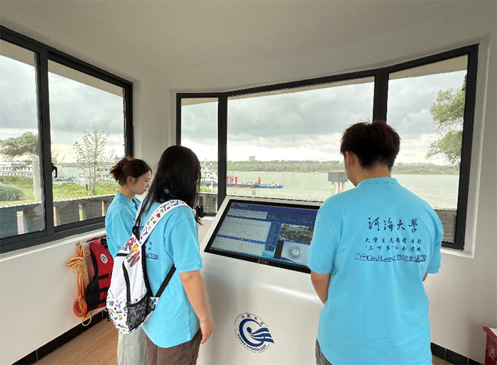 團隊成員在南京潮水位站體驗智能化水文監測設備