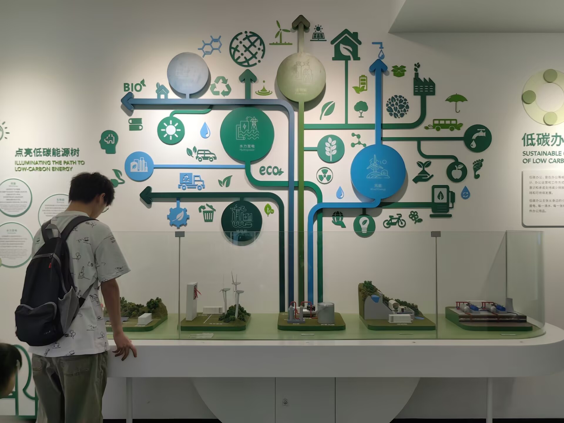 隨著實踐活動漸漸接近尾聲,團隊成員又將目光投向了展館工作人員,希望能更深入地了解這座 “低碳寶庫” 的故事。工作人員分享起未來的規(guī)劃藍圖,眼里滿是期待:“為了讓低碳理念更貼近生活,我們接下來會新增再生材料主題展臺,到時候大家能親眼看到,廢舊塑料瓶怎么變成實用的收納盒,舊布料如何拼成好看的靠墊 —— 讓‘垃圾變寶藏’不再是口號。” 他話鋒一轉(zhuǎn),又提及另一個新方向,“我們還會加入海洋生態(tài)保護相關(guān)展品,從陸地到海洋,從日常物品到全球生態(tài),讓大家明白低碳不是孤立的行動,而是關(guān)乎整個世界的長遠選擇。說到底,就是想讓更多人走進來、學(xué)明白,然后把低碳帶回家。”