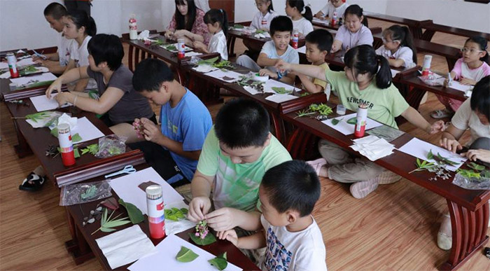 (圖為“萬綠湖樹葉拼詩”國學講堂課堂圖片)
