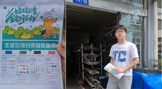 志愿者手持“生活垃圾分類投放指南”海報,向社區居民開展宣傳 劉嘉峻 供圖