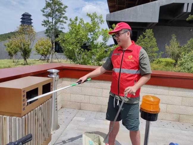 志愿者在景區,用垃圾夾撿拾垃圾并分類投放 劉嘉峻 供圖