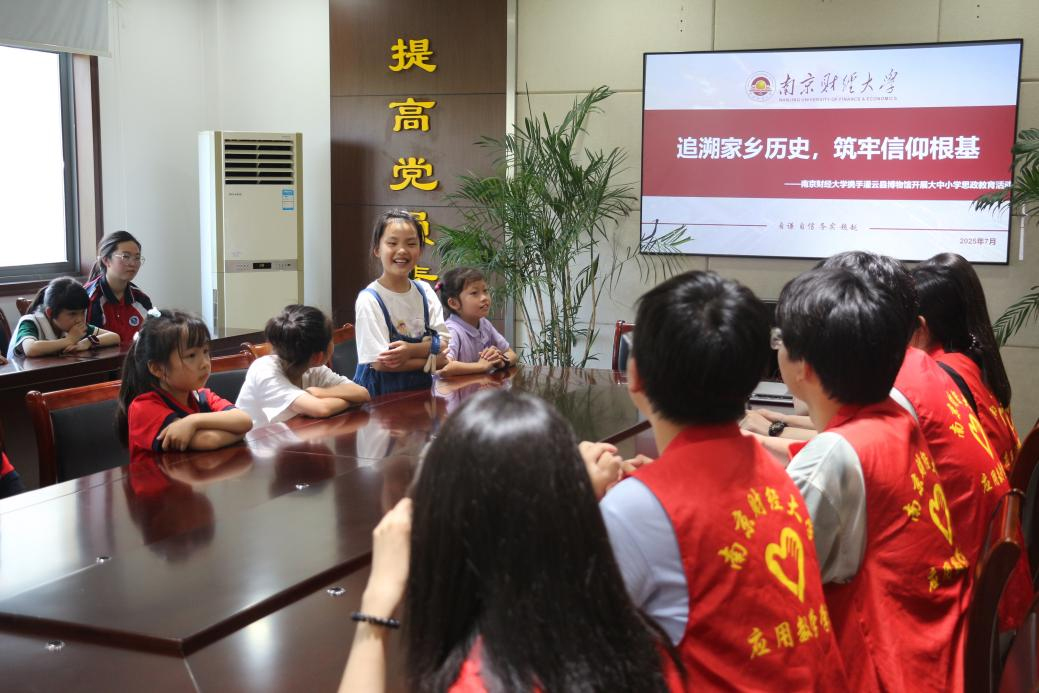 近年來,隨著大中小學思政教育一體化建設的不斷推進,如何打破學段壁壘、讓紅色基因與專業知識深度融合成為教育領域的重要課題。在此背景下,7月17日,南京財經大學應用數學學院“數啟青禾”團隊赴連云港市灌云縣聯合灌云縣博物館,開展“追溯家鄉歷史,筑牢信仰根基”大中小學思政教育活動。師生團隊與灌云縣20余名中小學生攜手走進博物館,在歷史文物與青年擔當的對話中,搭建起跨學段思政教育的橋梁。