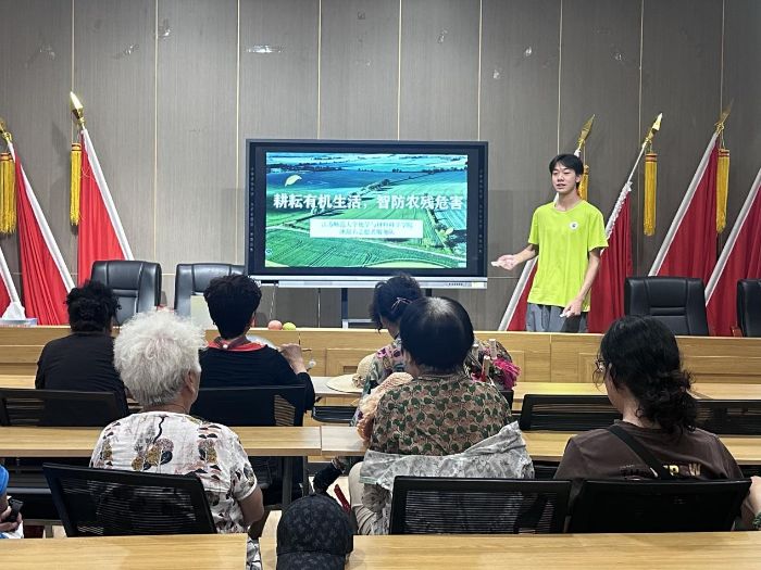 科技傳村社:開展有機農業宣講 為讓更多村民透徹了解農藥殘留的潛在危害,實踐團成員們帶著精心設計的宣傳單,先后走進徐州市豐縣大沙河鎮二壩村村委會、徐州市鼓樓區蘇電社區和徐州市新沂市北溝街道開展“耕耘有機生活,智防農殘危害”主題宣講。團隊成員結合當地的果蔬種植案例,用通俗易懂的方言土語,詳細講解了農藥殘留對人體健康的損害和對土壤水源的污染等內容,向村民普及有機種植知識,讓村民們更輕松地理解有機農業的原理、優勢以及其在環境保護和經濟發展中所發揮的重要作用。
