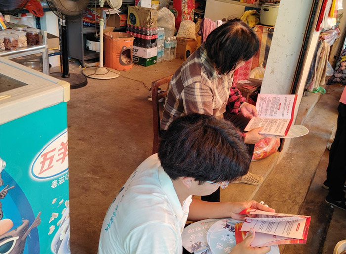 ▲圖為宣講隊隊員在便民時為鄰坊答疑解惑