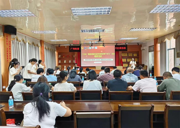 社區宣講:政策講解細致入微 活動首日,醫脈鄉承宣講隊前往廣利街道辦開展宣講與初步調研,在向社區人員細致入微講解的同時發放了關于對資助政策了解情況的調查問卷,以便了解居民生活水平、實際需求等關鍵信息。宣講隊員將政策條文淬煉成方言里的家常話,從學前班的‘小樹苗津貼’到大學的‘鯤鵬貸’,一條助學長鏈在居民掌心徐徐鋪展。