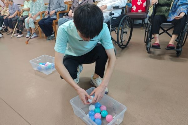 活動開始前,團隊成員精心布置場地,準備“海洋球釣魚”趣味游戲道具。特制粘桿模擬垂釣,老人們用粘桿“釣起”海洋球;木棍夾小球挑戰,新穎的玩法瞬間激發了老人們的參與熱情。過程中,老人們專注投入,不時傳出陣陣歡笑聲,團隊成員在旁協助引導,耐心解答疑問。游戲結束后,團隊與老人們圍坐一起,共同觀看經典節目,在跌宕起伏的劇情中重溫崢嶸歲月,交流觀影感悟。