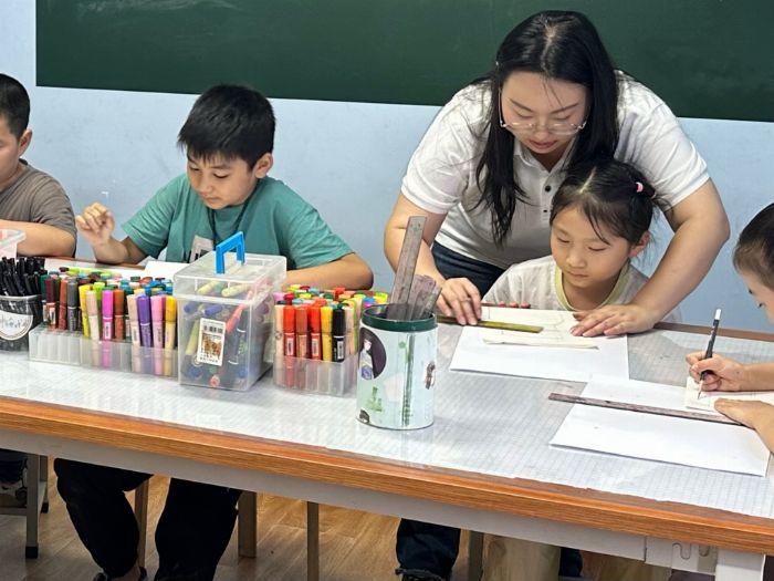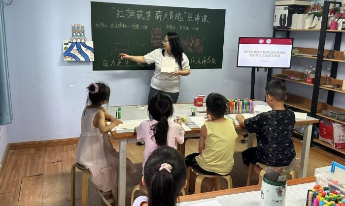 圖為實踐團(tuán)成員為小朋友講解繪畫細(xì)節(jié)。侯振 供圖