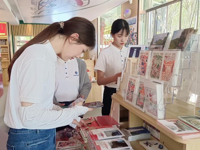 圖為實踐團(tuán)成員在當(dāng)?shù)剡M(jìn)行文創(chuàng)產(chǎn)品調(diào)研。常馥珺 供圖
