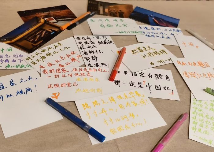 參觀結束后,團隊選取最想傳遞的元素創作手繪明信片,并相互交流收獲心得,讓文化與精神感悟通過畫筆“可視化”,使每張明信片成為“文化與精神傳承名片”,承載著青春對歷史的敬意。