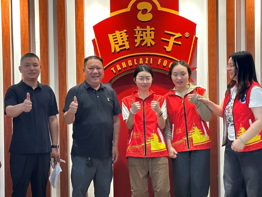 7月25日至26日,實踐團深入調(diào)研溈濱村辣椒與煙草加工產(chǎn)業(yè)。在唐辣子辣椒加工廠,董事長唐正良帶領(lǐng)團隊參觀發(fā)酵區(qū)、生產(chǎn)區(qū)和打包區(qū)全流程生產(chǎn)。工廠創(chuàng)新采用"大桶餐飲供應(yīng)+小罐電商試營"雙軌模式,普通話作為統(tǒng)一的商務(wù)溝通媒介,其普及顯著提升了跨區(qū)域溝通效率,為拓展全國市場奠定基礎(chǔ)。