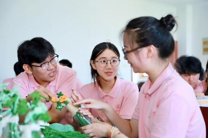 聚焦 “舊物新生” 主題。實踐隊與鎮江市黃墟小學的 10 名學生開展活動。隊員們提前準備了玻璃瓶、廢舊輪胎、顏料、扭扭棒等材料,引導孩子們發揮想象:有的在瓶身繪制鄉村風光,有的則在輪胎上畫出動植物,甚至把心里的童話世界都畫出來!經過一個半小時創作,原本閑置的玻璃瓶變成了色彩斑斕的 “花瓶”,插上扭扭棒花朵后,更顯童趣與創意。