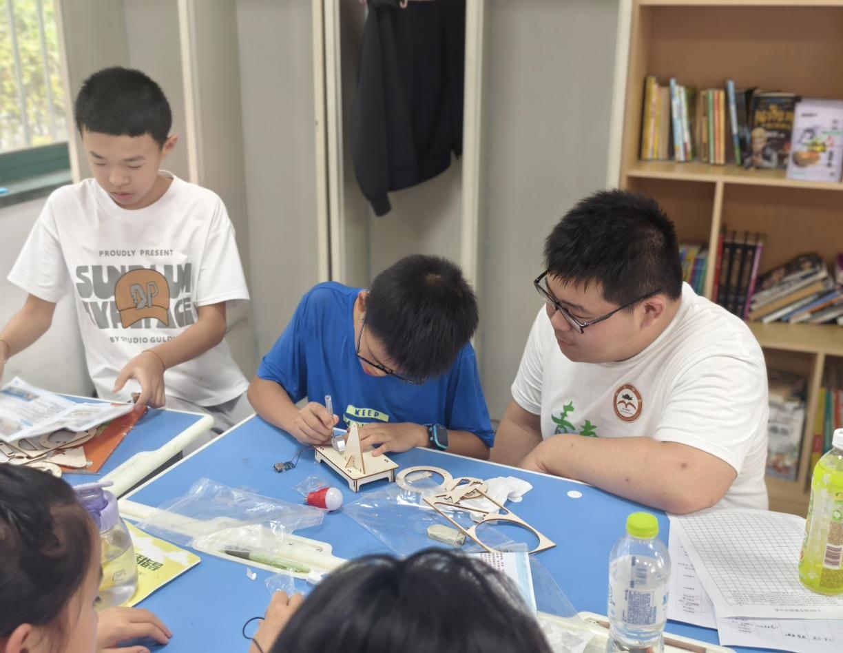 7月22日下午兩點(diǎn),在青島辛安街道趙家?guī)X社區(qū),彩云陽育支教隊(duì)攜手江海碳達(dá)峰碳中和科普宣講團(tuán)推出“奇妙的電世界”科普活動(dòng)。支教隊(duì)員侯陽,趙粟媛,張?jiān)婈孔尯⒆觽円徊讲浇议_電的神秘面紗,度過充滿驚喜的科學(xué)探索時(shí)光。