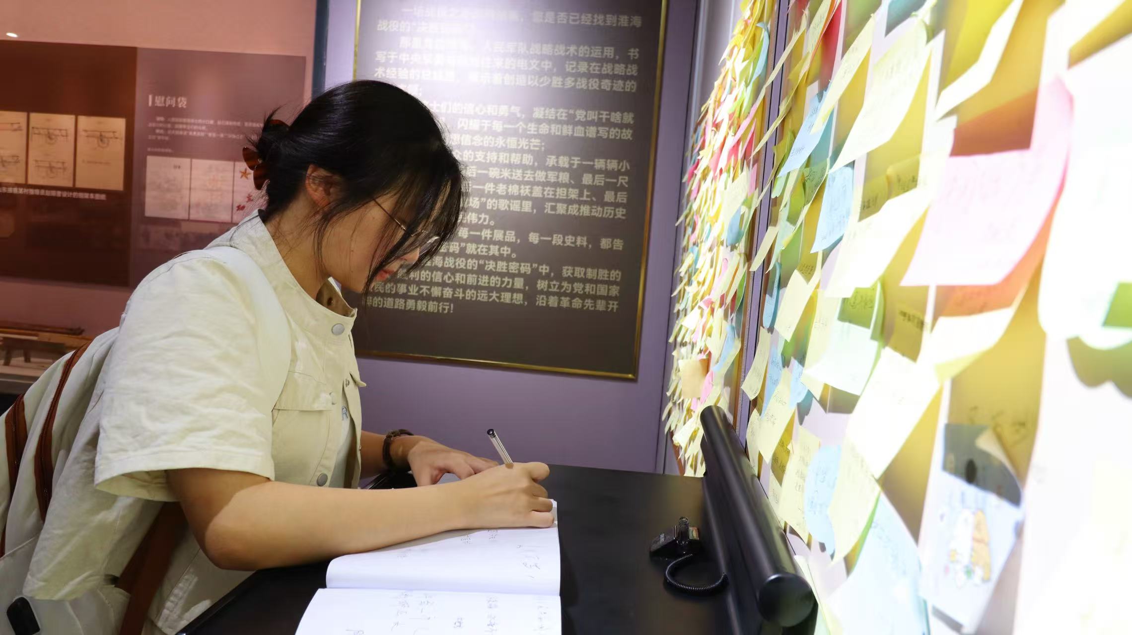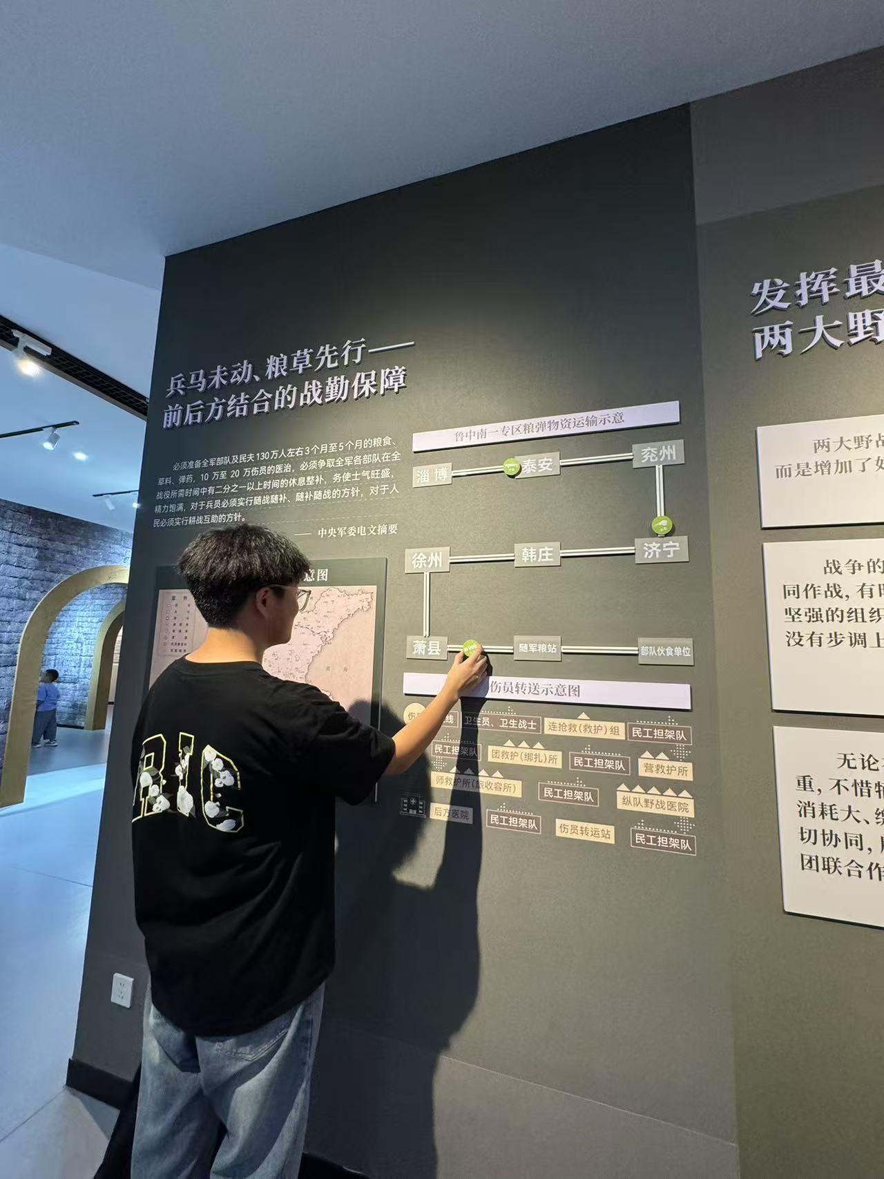 紀念館里,學習熱情涌動。在巨幅浮雕前,家長耐心引導孩子解讀“小推車推出來的勝利”;互動展品旁,年輕父母與孩子共同操作,在光影故事中傳遞紅色記憶;親歷者影像前,觀眾屏息聆聽跨越時空的戰斗故事。“不怕吃苦、不懼犧牲的信念,在新時代依然振聾發聵。”一位隊員記錄下這樣的觀察。