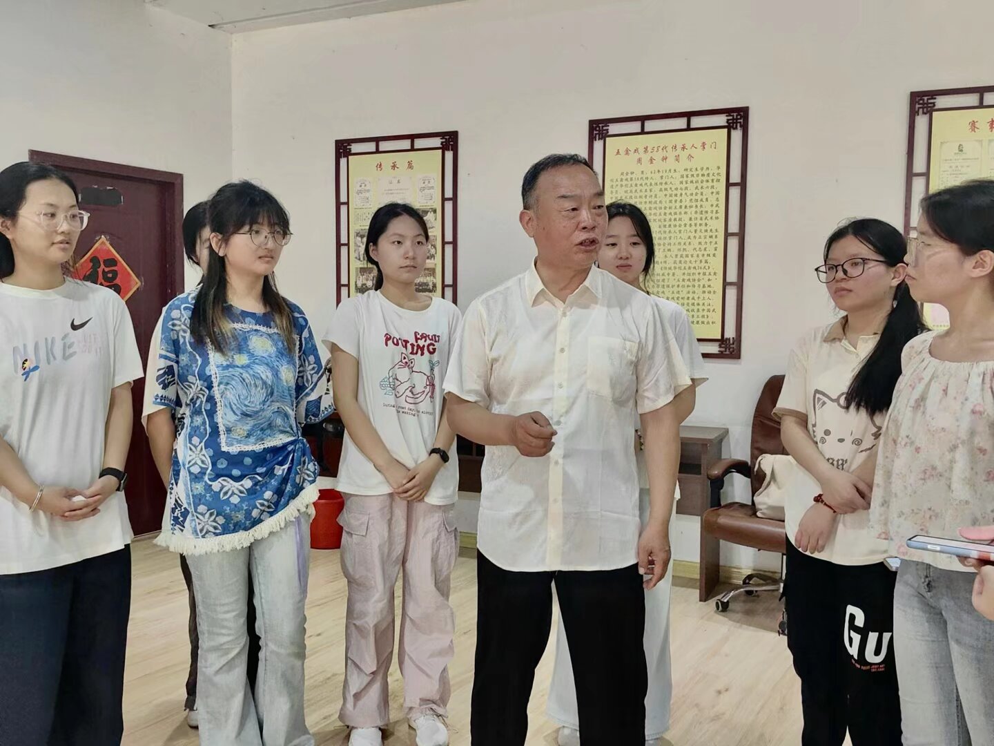 圖為實踐團成員向五禽戲傳人周金鐘老師了解五禽戲的傳承發展情況。張昊洋 供圖