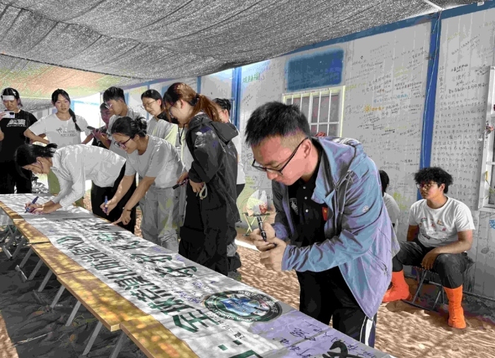 下午,各高校實踐隊齊聚公益林基地,在《地球綠盾2030:全球荒漠化防治倡議》(后簡稱為《倡議》)橫幅上簽下自己的姓名、高校之名、真摯的寄語......簽字過程中,大家心中都種上了一顆為民勤綠色、中國綠色、世界綠色貢獻(xiàn)力量的種子,期望這顆種子傳播的更遠(yuǎn)、長得更高。
