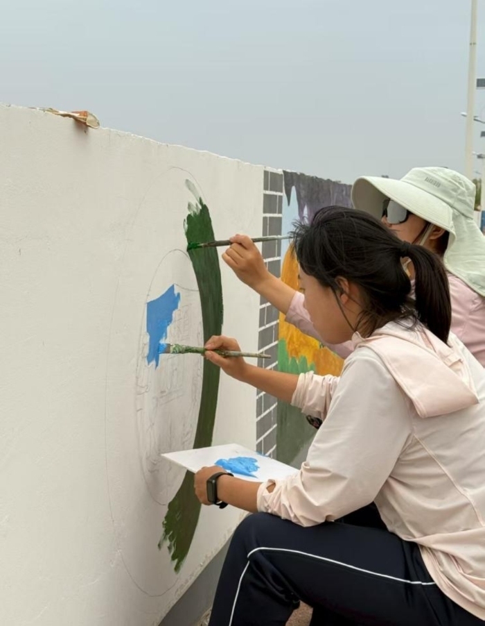 當(dāng)晚,隊員們受民勤文旅局邀請,活力四射地參與了民勤縣夜跑活動開幕式,青春身影融入當(dāng)?shù)匚幕睢?br /> 與此同時,第二分隊的四位成員清晨便深入田間,體驗蜜瓜采摘的辛勞與喜悅。隨后轉(zhuǎn)戰(zhàn)紅崖山水庫,化身“藝術(shù)治沙者”,以畫筆為武器,在水庫墻面上精心繪制環(huán)保主題海報,用斑斕色彩為節(jié)水護(hù)水理念增添一抹亮麗風(fēng)景。