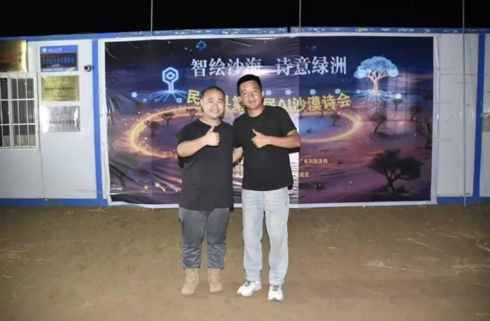 此外,實踐隊還有幸親歷了甘肅民勤縣“智繪沙海 詩意綠洲”首屆AI沙漠詩會。人工智能詩人深度參與創(chuàng)作,其作品在風(fēng)沙與綠洲的交響中被誦讀演繹。這不僅是一場科技與詩歌的先鋒碰撞,更巧妙地融入了民勤人智能治沙、守護(hù)家園的堅韌精神,于蒼茫沙海中譜寫出人機(jī)協(xié)作、共繪詩意綠洲的嶄新篇章。