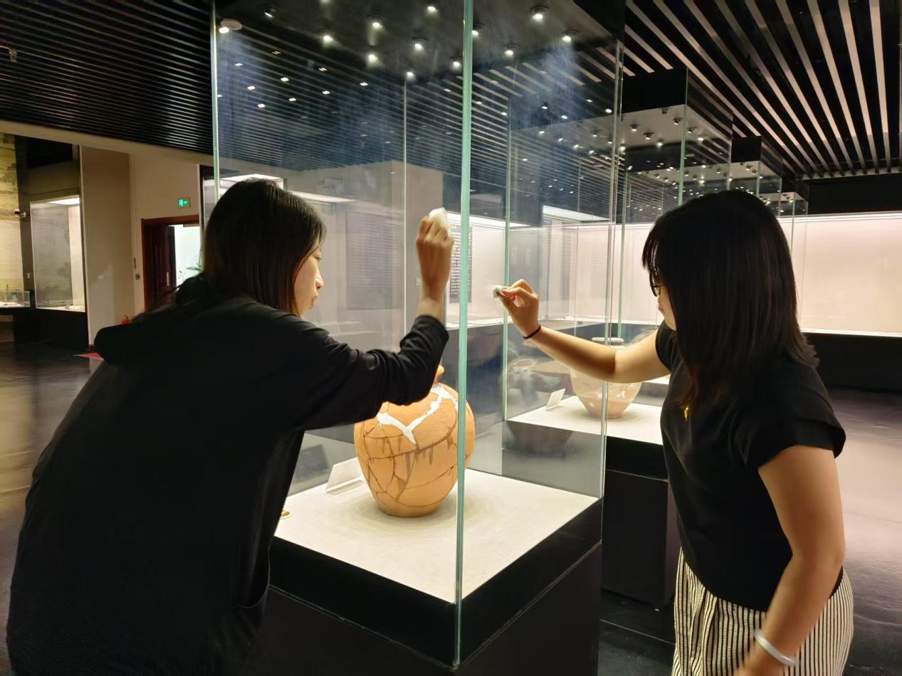 14日至15日,實(shí)踐團(tuán)對(duì)博物館公共區(qū)展開(kāi)深度清潔。成員用專(zhuān)業(yè)工具清理展柜浮塵,并對(duì)無(wú)障礙通道進(jìn)行沖刷消毒,為觀眾營(yíng)造整潔舒適的參觀環(huán)境。