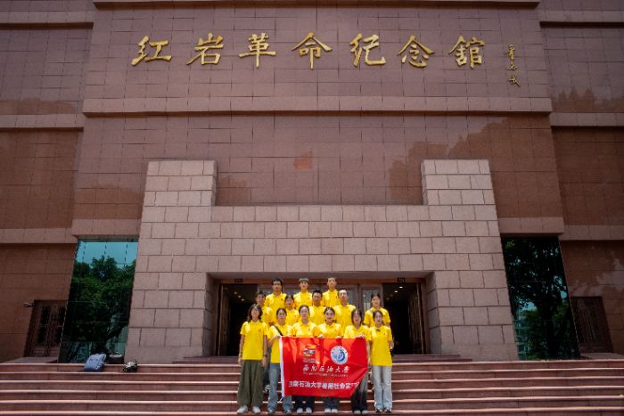為積極響應(yīng)“把紅色資源利用好、把紅色傳統(tǒng)發(fā)揚(yáng)好、把紅色基因傳承好”的時(shí)代號(hào)召,西南石油大學(xué)“鑄魂巴蜀·赤旌國(guó)護(hù)”社會(huì)實(shí)踐隊(duì)于2025年暑期開(kāi)啟“信仰長(zhǎng)征”。實(shí)踐隊(duì)以“軍民一體、國(guó)共一體、川渝一體”解碼統(tǒng)一戰(zhàn)線(xiàn)偉力,沿川軍出川抗戰(zhàn)路線(xiàn),11天跨越川渝兩地千余公里,開(kāi)展紅色基因?qū)ぴL(fǎng)與傳播行動(dòng)。通過(guò)“重走路線(xiàn)深調(diào)研+轉(zhuǎn)化成果廣宣講”的雙軌模式,將革命精神注入新時(shí)代青春血脈。實(shí)踐隊(duì)首站深入成都建川博物館,從川軍將士飽含深情的家書(shū)與承載歷史的遺物中,凝練出四川人民“毀家紓難”的共情敘事。隊(duì)員們深刻體悟到“軍民一體”的深厚根基:百姓忍饑挨餓,以苕藤樹(shù)葉充饑,只為將口糧捐往前線(xiàn);民工不分晝夜,血肉之軀搶修戰(zhàn)略機(jī)場(chǎng);萬(wàn)千學(xué)子毅然棄筆從戎,奔赴國(guó)難。在這里,全體隊(duì)員完成了對(duì)川軍出川歷史背景的集體學(xué)習(xí)和情感共鳴。