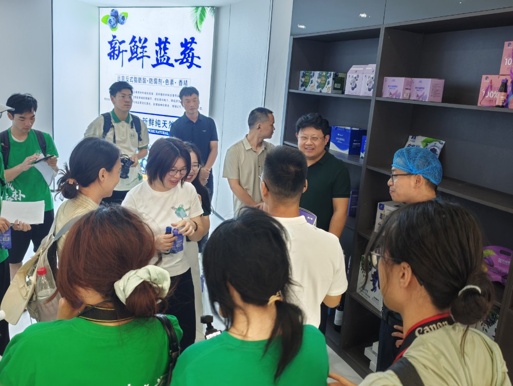 小藍(lán)莓成就大產(chǎn)業(yè)。貴州省麻江藍(lán)莓科普示范基地、麻江烏卡坪藍(lán)莓生態(tài)循環(huán)產(chǎn)業(yè)園區(qū)內(nèi),藍(lán)莓果干、藍(lán)莓原液、藍(lán)莓醬等系列產(chǎn)品琳瑯滿目,團(tuán)隊(duì)參觀生產(chǎn)加工線,調(diào)研科學(xué)種植與精細(xì)加工方式。團(tuán)隊(duì)在采訪麻江縣供銷甄選直播主管楊興橋時(shí),他提到供銷社積極擁抱直播新業(yè)態(tài),精準(zhǔn)定位目標(biāo)消費(fèi)群體,強(qiáng)化“麻小莓”等區(qū)域品牌形象宣傳,讓藍(lán)莓的“甜蜜經(jīng)濟(jì)”鏈得更緊,讓農(nóng)文旅的“化學(xué)反應(yīng)”更充分!