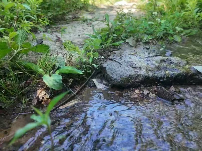 上午9點30分實踐小隊開始出發,崎嶇的山路像一條被歲月啃噬的麻繩,歪斜地纏在蒼翠的嶺脊上。實踐小隊的膠鞋碾過碎石,驚起幾只藏匿的螞蚱,草葉上的露水早已被正午的太陽蒸干,只剩下一道道龜裂的泥痕,像渴極了的嘴唇。狹窄的道路和崎嶇不平的山路,并不能阻擋實踐小隊前進的步伐。路上泥濘的泥巴和松懈的沙石,都是對實踐小隊能否成功探索水資源盡頭的考驗。