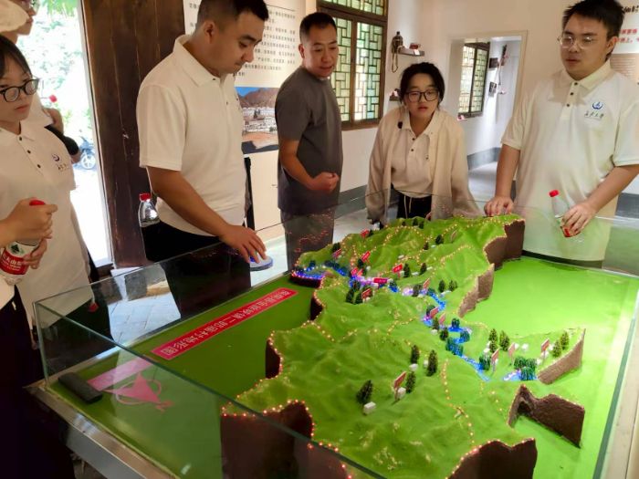 村史館里看變遷,文旅融合煥新顏 在二郎廟村委會(huì)副主任嵇文君的帶領(lǐng)下,實(shí)踐隊(duì)參觀了二郎廟村村史館,斑駁的老農(nóng)具、泛黃的照片與干凈整潔的小平房,生動(dòng)呈現(xiàn)了村莊從“貧困村”到“省級(jí)美麗宜居示范村”的蛻變歷程。隨后,隊(duì)員們走訪了依山傍水的特色民宿集群,二郎廟村通過發(fā)展特色民宿,不僅帶動(dòng)了當(dāng)?shù)芈糜螛I(yè)的發(fā)展,也為村民提供了更多的就業(yè)機(jī)會(huì)和收入來源。